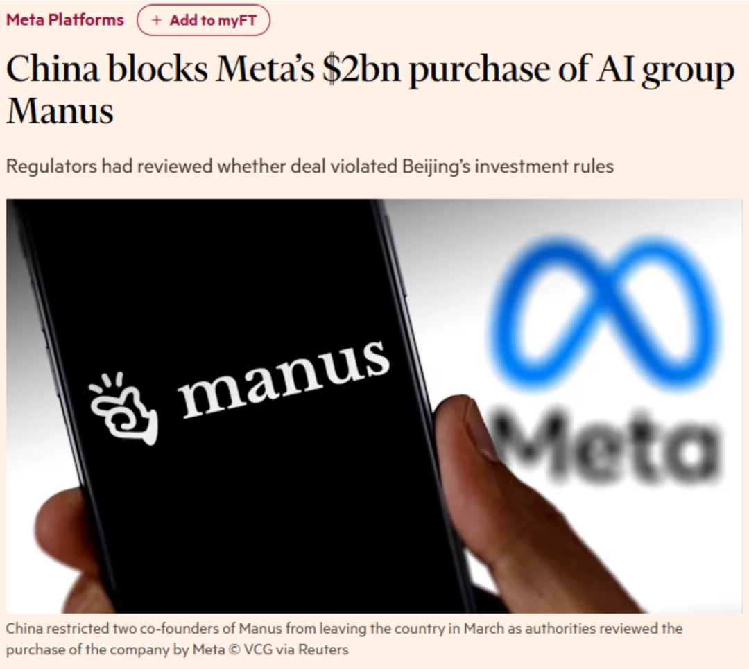 有人说,监管这次要求Meta撤销这笔收购,扎克伯格会笑醒。因为Manus的Agent能力在OpenAI、Claude、Hermes、Openclaw这些对手持续升级后,已经大幅贬值。据说现在它的估值缩水90%以上。中国监管一刀切,反而帮Meta省了一大笔冤枉钱。但是根据《金融时报》的报道,似乎不是这么回事。扎克伯格这次应该会很难受。