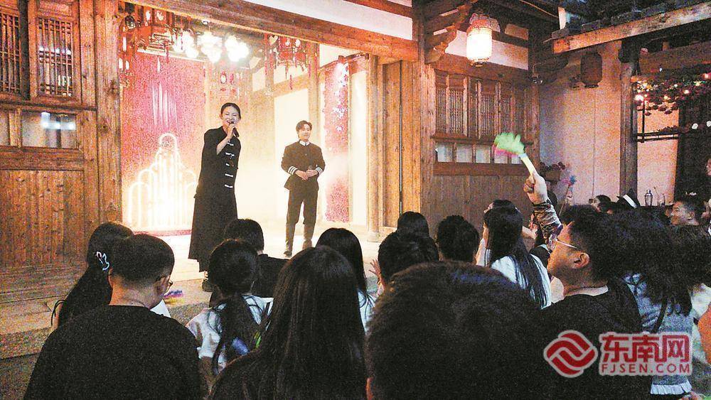 r华灯初上,“00后”赖世好和朋友来到位于仓山区仓观顶巷8号的“烟山旧”沉浸式剧场,这是一座由百年老房子改造而成的剧场。与在普通剧场观剧不同,这次赖世好和小伙伴要扮演自己选定的角色并参与到剧中。他们当天要体验的剧本叫《先生》,需要先到道具间选道具,再根据道具扮演特定角色,不同角色会有不同的剧情。