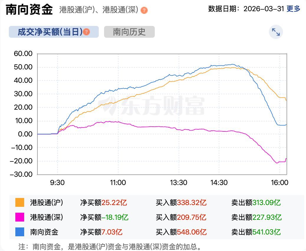 资金方面,南向资金今日略有流入。截至收盘,南向资金净买入港股超7亿港元。