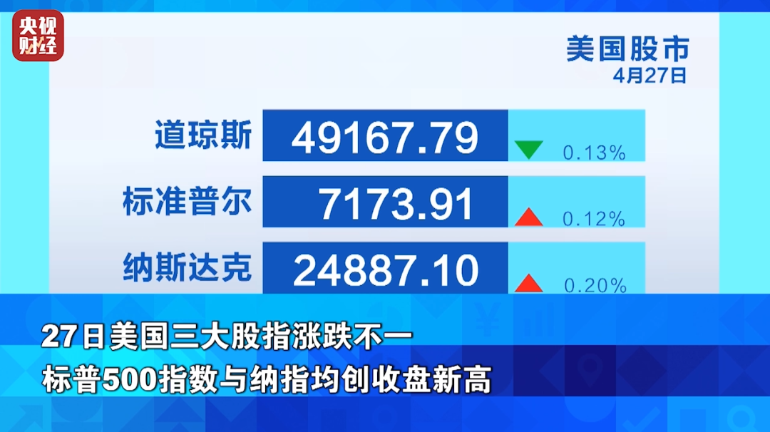 打开新闻客户端 提升3倍流畅度27日美国三大股指涨跌不一 标普500指数与纳指均创收盘新高